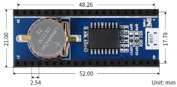 ¡ß Ư¡ - Ç¥ÁØ ¶óÁ¸® Pi Pico Çì´õ, ¶óÁ¸® Pi Pico ½Ã¸®Áî Áö¿ø - °íÁ¤¹Ð RTC Ĩ DS3231 (¹é¾÷ ¹èÅ͸® Ȧ´õ Æ÷ÇÔ) - 2100±îÁö À¯È¿ÇÑ À±³â º¸»ó¿¡ ÀÇÇÑ ½Ç½Ã°£Å¬·° Ä«¿îÆ®(ÃÊ, ºÐ, ½Ã°£, ³¯Â¥, ¿ù, ¿äÀÏ ¹× ³â) - ¿É¼Ç Çü½Ä: 24½Ã°£ ¶Ç´Â 12½Ã°£ AM/PM Ç¥½Ã±â »ç¿ë - 2¹è¼Ó ÇÁ·Î±×·¥ °¡´É ¾Ë¶÷ Ŭ·°