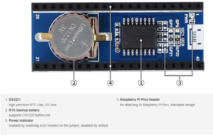 ¡ß °³¿ä - Pico-RTC-DS3231Àº Ratsberry Pi Pico Àü¿ë RTC È®Àå ¸ðµâÀÔ´Ï´Ù. - °íÁ¤¹Ð RTC Ĩ DS3231À» ³»ÀåÇϰí ÀÖÀ¸¸ç Åë½Å¿¡´Â I2C ¹ö½º¸¦ »ç¿ëÇÕ´Ï´Ù. - ½ºÅà °¡´ÉÇÑ ¼³°è ´öºÐ¿¡ ´õ ¸¹Àº ¿ÜºÎ ¼¾¼¸¦ ¿¬°áÇÒ ¼ö ÀÖ½À´Ï´Ù.