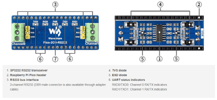 ¡ß °³¿ä - Rasberry Pi Pico¿ë 2ä³Î RS232 ¸ðµâ, SP32EEN Æ®·£½Ã¹ö, UART to RS232
